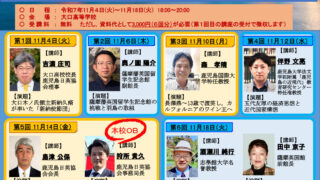 お知らせ 歴史を活かしたまちづくり懇話会 大口高校は同窓会・PTAと共催で「ふるさと歴史講座」を開催しています。私、吉満が校長になって以来,5回開催してきましたが,その参加者を中心に下記別紙のイベントを行うことになりました。来年の新納忠元公生誕500周年,再来年の西南戦争150周年... 2025.11.18 お知らせ